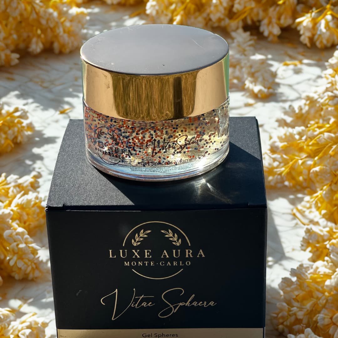 Le gel Vitae Sphaera de Luxe Aura est une harmonie de Vitamines C et E pures, des microsphères colorées qui se libèrent au contact de la peau. Ce soin englobe l’efficacité des vitamines essentielles dans un gel transparent en suspension, avec une formule conçue pour apporter une puissante dose de nutrition directement aux cellules qui en ont le plus besoin, offrant un effet stimulant, revitalisant et anti-âge sur les peaux ternes ou fatiguées. La combinaison unique de vitamines est non seulement esthétiquement admirable, mais également scientifiquement formulée pour répondre à une large gamme de besoins cutanés, offrant une solution de soin complète et efficace.